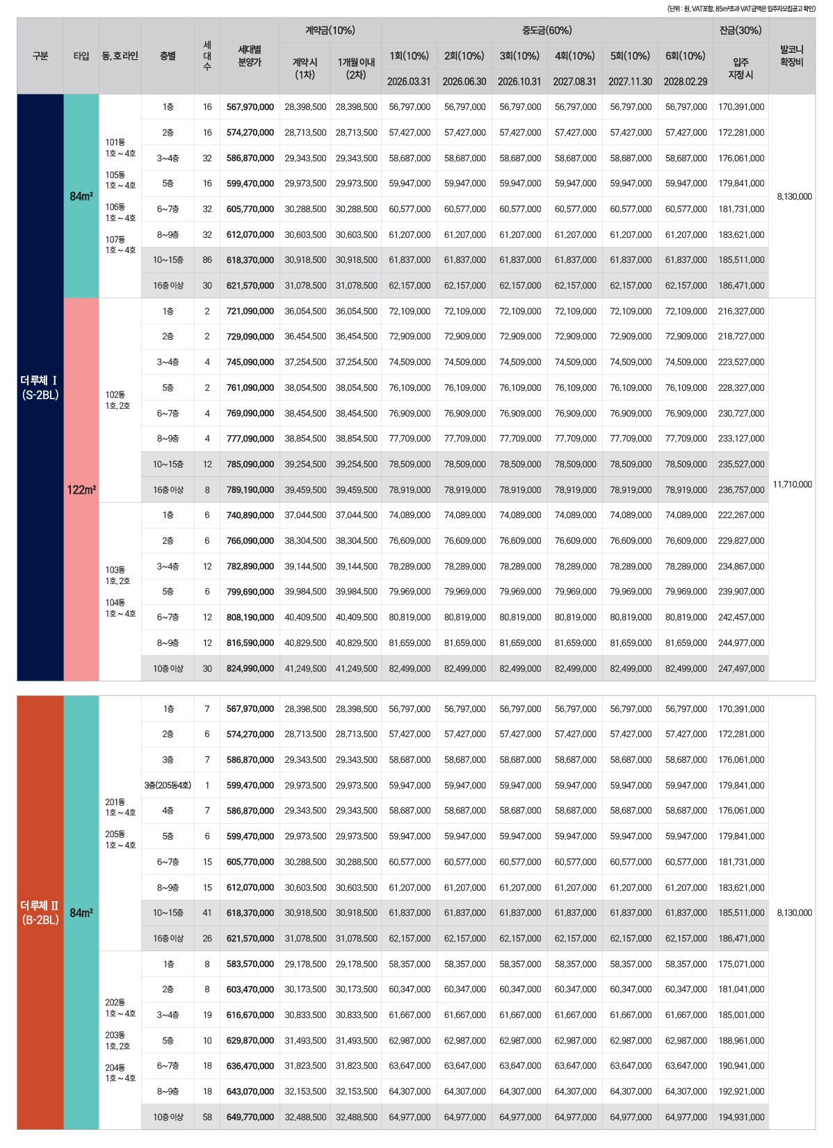 ※ 상기 ‘분양가’ 외 발코니 확장비 등 추가 선택품목 금액은 입주자 모집공고를 참고하기 바랍니다.