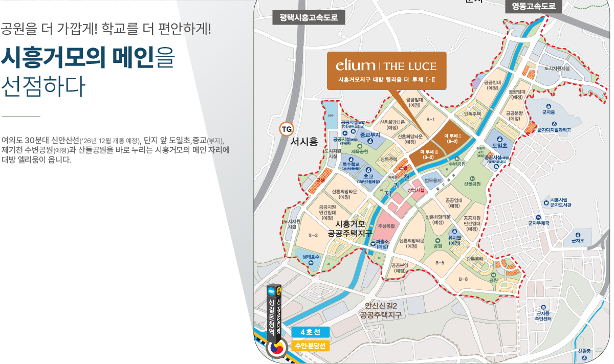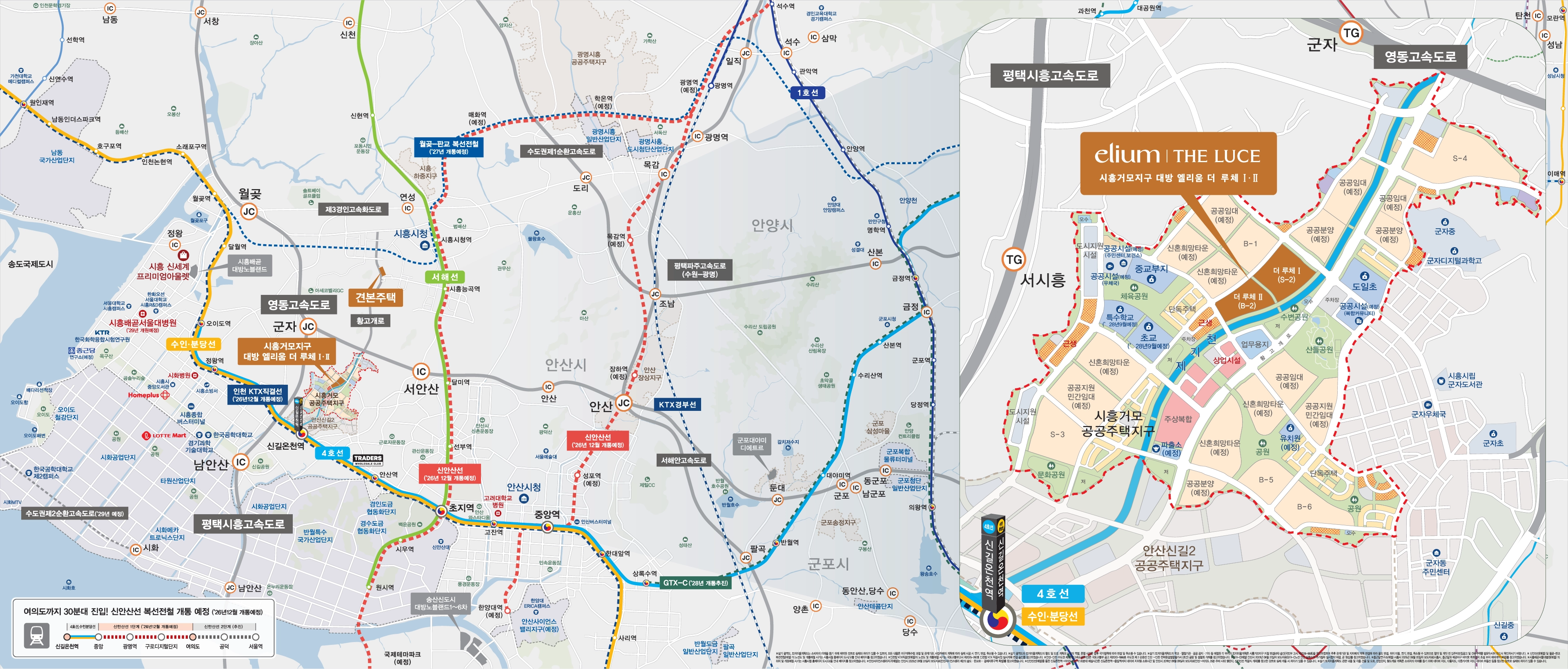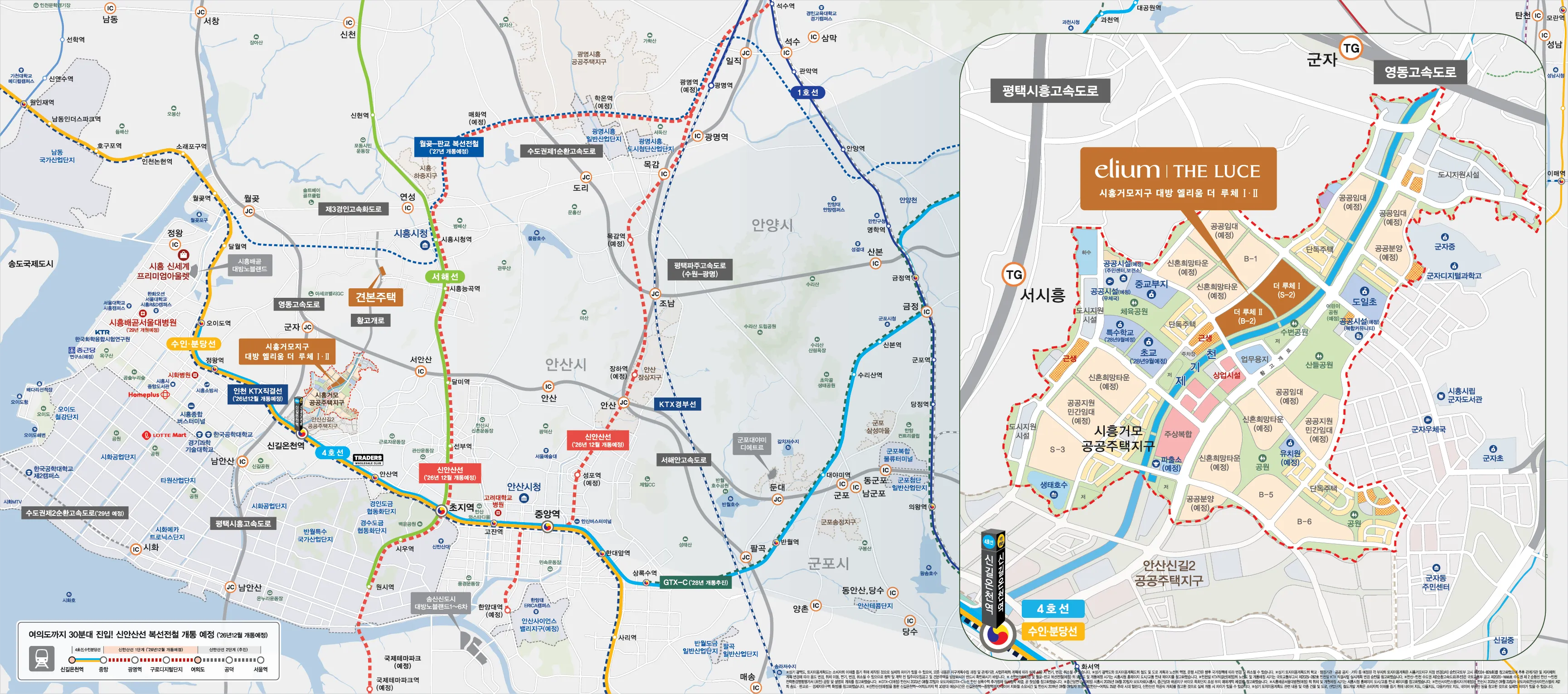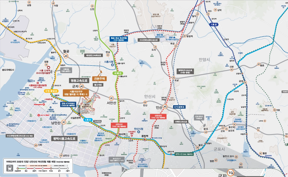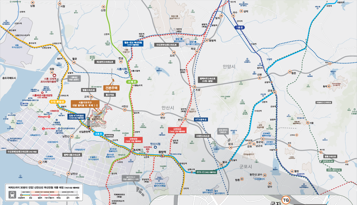 ※ 신안산선(예정) 및 월곶-판교 복선전철(예정) 의 노선도 및 개통예정 시기는 시흥시청 홈페이지 도시/교통 안내 페이지를 참고하였습니다.